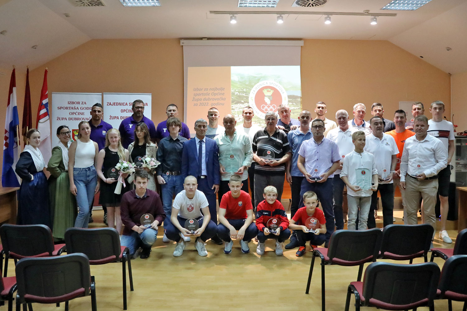 Nagrade su dodijeljene Boćarskom klubu Donji Brgat koji je u 2022. godini osvojio u 2. Županijskoj boćarskoj ligi te stekao pravo igranja u Prvoj županijskoj ligi, Andrei Kalacanović županijskoj pobjednici u streljaštvu u kategoriji juniorki serijska zračna puška, Rukometnom klubu Ardiaei prošlogodišnjem prvaku 2. HRL-jug, generaciji U-15 NK Župa dubrovačka pobjedniku Kupa dalmatinskih županija, Boćarskom klubu Rijeka za osvajanje Županijskog kupa u boćanju, Orsatu Biliću županijskom kadetskom i juniorskom prvaku u streljaštvu kategorija serijska zračna puška, Toniju Muževiću juniorskom prvaku Hrvatske u taekwondou, Ivoni Vlašić kadetskoj prvakinji Hrvatske s VK Jugom u vaterpolu, Paru BK Rijeka Luko Ledinić i Nikola Žeravica županijskim prvacima u boćarskim parovima, generaciji U-10 NK Župa dubrovačka županijskim prvacima svog uzrasta, Školskom športskom klubu Brenum čiji su košarkaši viceprvaci Hrvatske u košarci, a odbojkašice županijske prvakinje, Mateu Zdrauliću prvaku županije u streljaštvu u kategoriji kadeti standard zračna puška, Nikši Miloslaviću državnom prvaku u streljaštvu u olimpijskoj disciplini Skeet, Marku Kuraji futsal reprezentativcu Hrvatske, Bošku Periću i Božu Koprivici Europskim veteranskim prvacima u vaterpolu s VK Dubrovački veterani, generaciji U-8 NK Župa dubrovačka županijskim prvacima svog uzrasta te Nihadu Seferagiću vozaču AK Župu dubrovačku prvaku Hrvatske u grupi 2 na brdskim stazama.